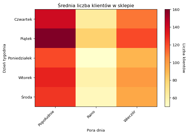 plt.ylabel('Średnia liczba klientów w sklepie')