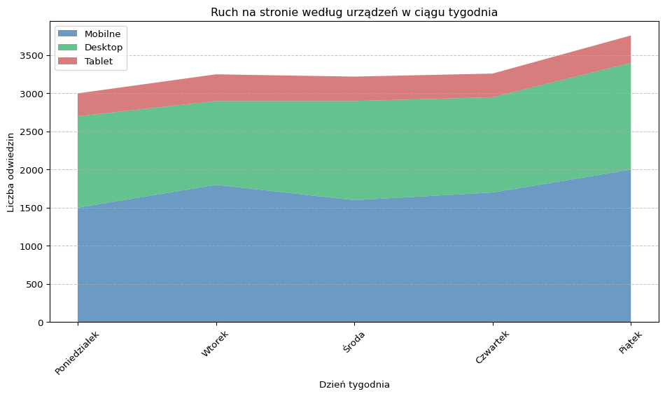 )'Ruch na stronie według urządzeń w ciągu tygodnia')