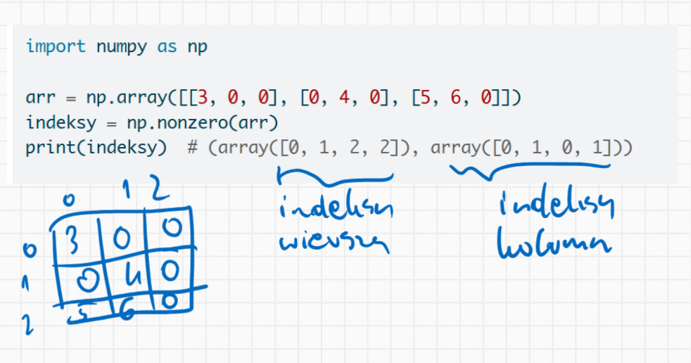 print (indeksy) # (array([0, 1, 2, 2]), array([0, 1, 0, 1]))