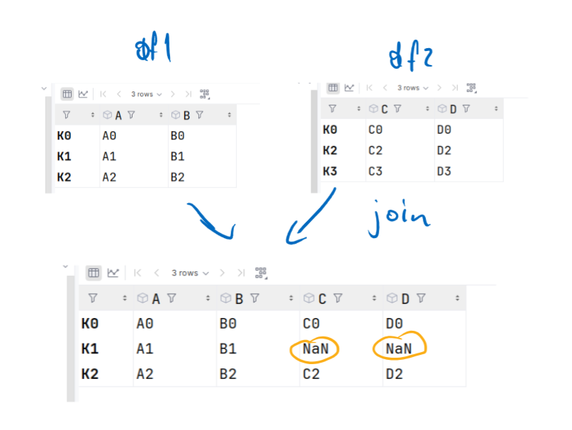 left_on i right_on: nazwy kolumn w lewej i prawej ramce danych, które mają być używane do łączenia. Można to użyć, jeśli nazwy kolumn nie są takie same.