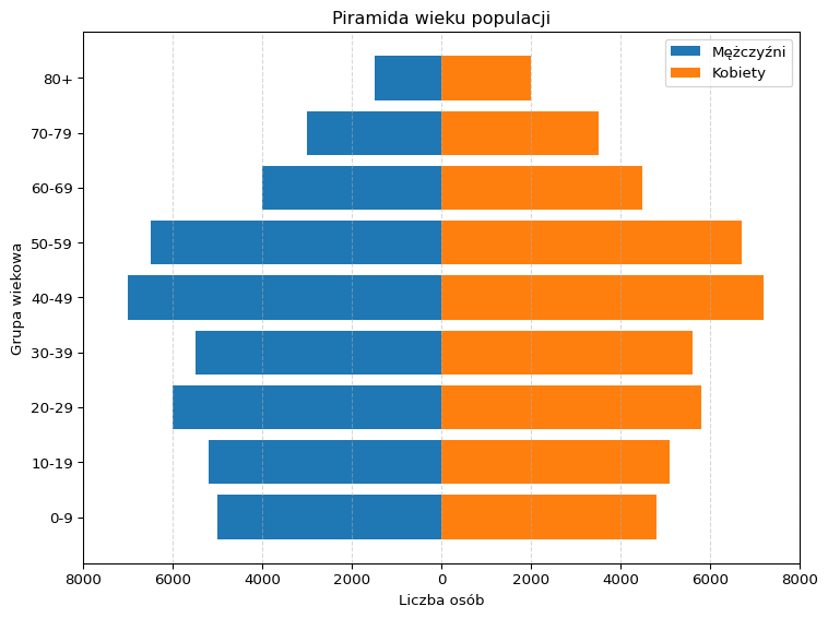 # Definicja ticków co 2000, od -8000 do +8000, i wyświetlenie ich jako wartości bezwzględnych