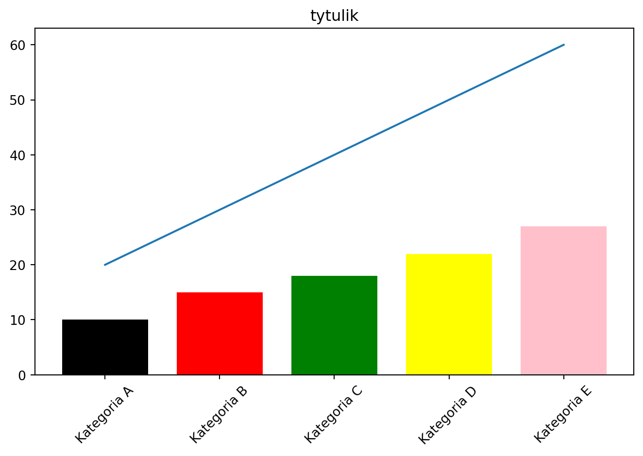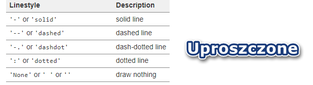 plt.plot(x, y, 'green', linestyle="--", label="zielony"): rysuje zielony wykres z wartościami z tablicy x i wartościami y. Linia jest przerywana (linestyle="--").