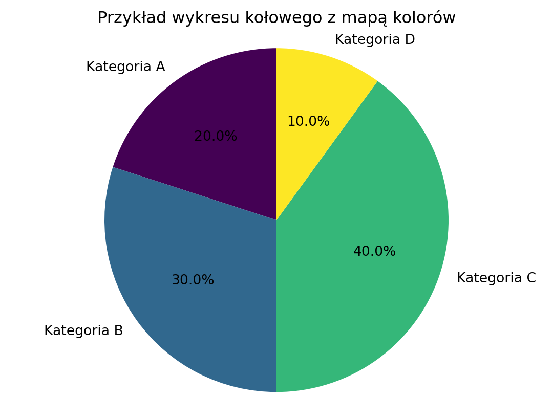 plt.show()plt.scatter(x, y, c=z, cmap='viridis'): ta linia tworzy wykres punktowy (scatter plot) z danymi x, y i z. x i y to dane, które będą wyświetlane na osi X i Y, a z to dane, które będą używane do stworzenia mapy kolorów. Argument cmap='viridis' określa mapę kolorów, która będzie użyta do przypisania kolorów do wartości numerycznych.