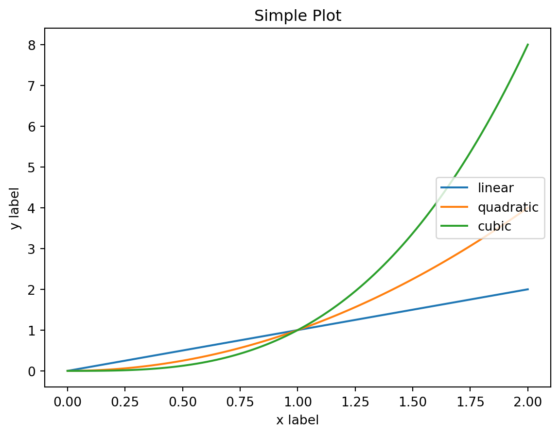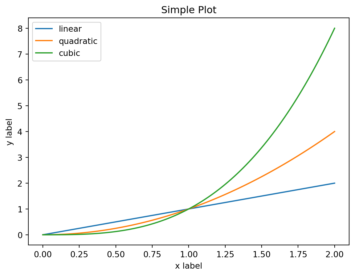 plt.plot(x, x**3, label='cubic'): rysuje wykres sześcienny (y = x^3) z wartościami z tablicy x.