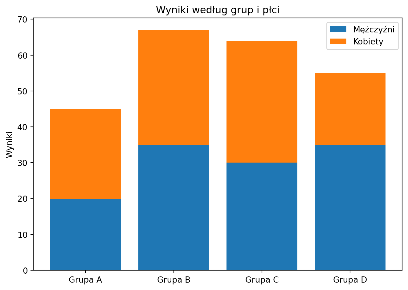 ax.set_title('Wyniki według grup i płci')