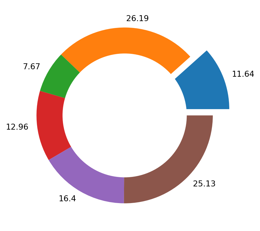 explode = (0.2, 0, 0, 0, 0, 0)