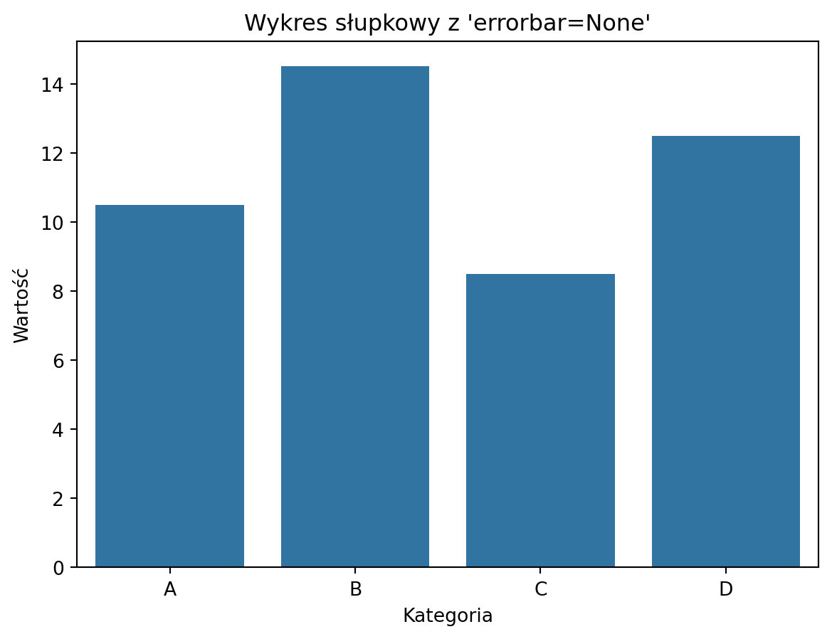 Parametr ci: pozwala na dodanie przedziału ufności (confidence interval) dla wykresu, który może być użyteczny w przypadku wielokrotnych pomiarów dla tych samych wartości na osi X.
