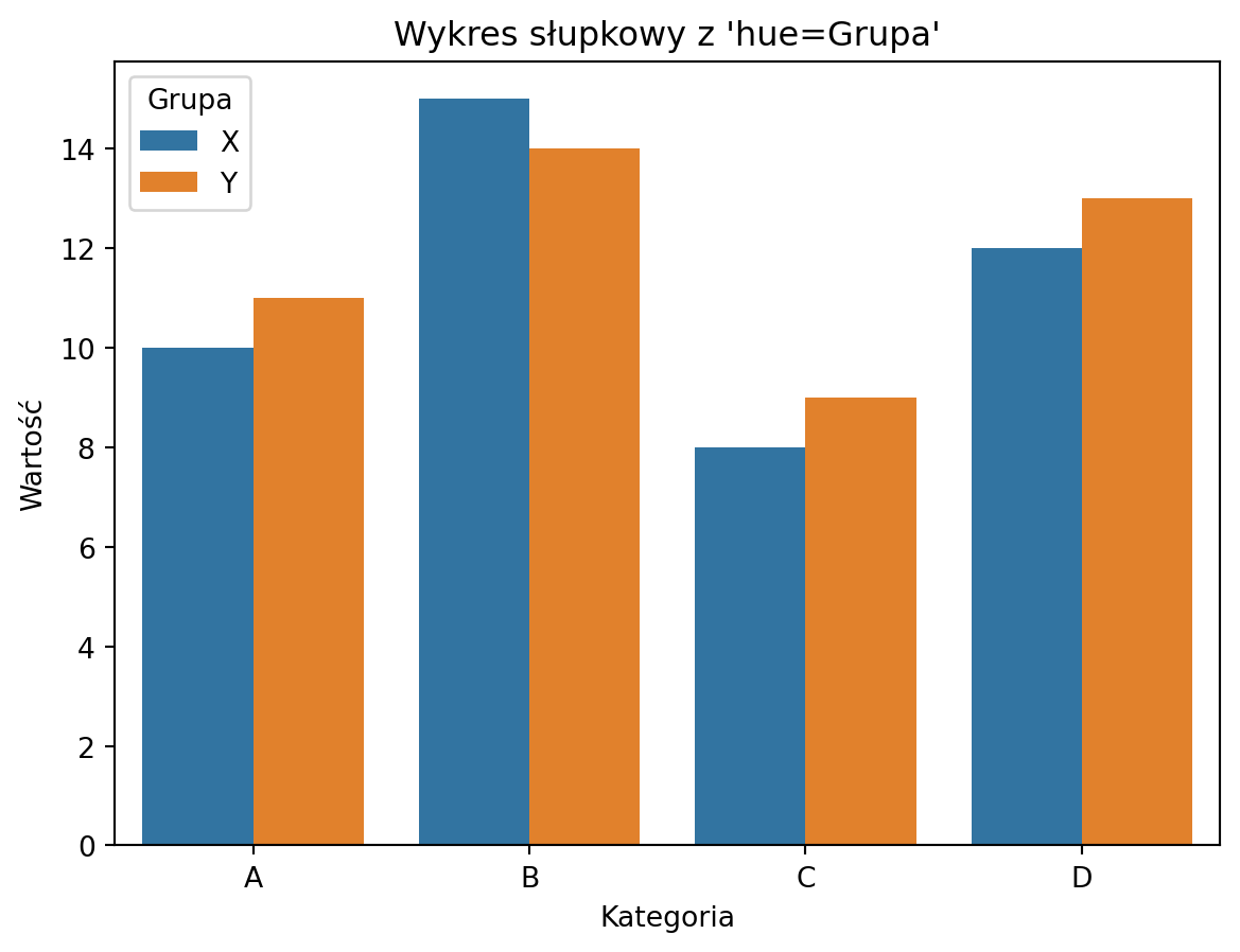 Parametr hue: pozwala na dodanie kolorowania punktów na podstawie wartości zmiennej kategorialnej.